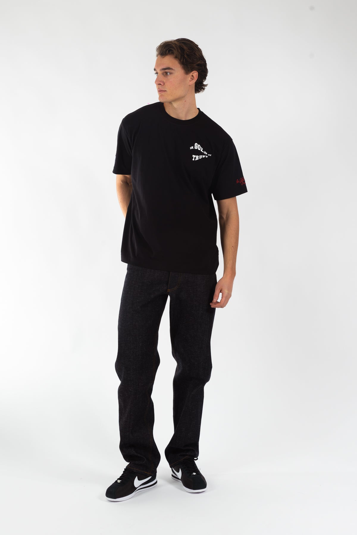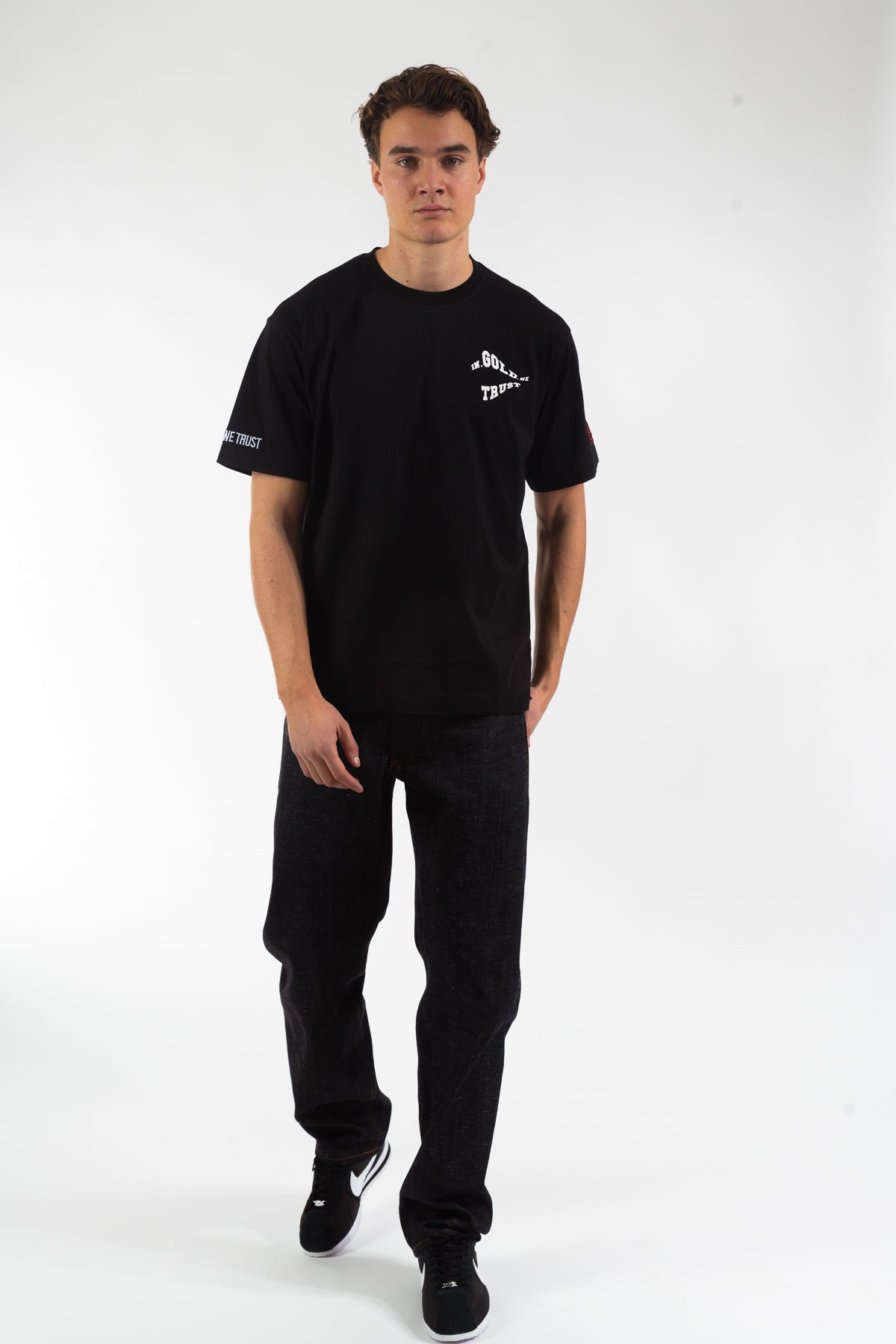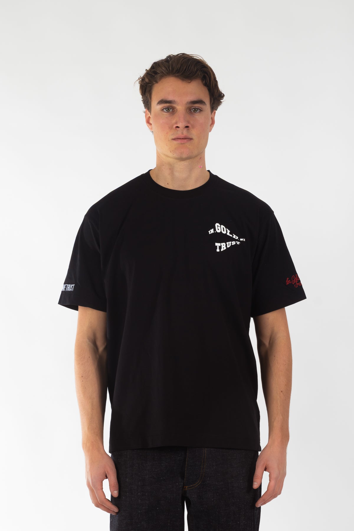 T-shirt uit de nieuwe collectie, gemaakt van 100% katoen in een comfortabele loose fit. Voorzien van een wavy logo in hoogwaardige zeefdruk en onze signature borduring op de mouwen. Tijdloos design, uitgevoerd in de originele kwaliteit waar In Gold We Trust om bekendstaat.