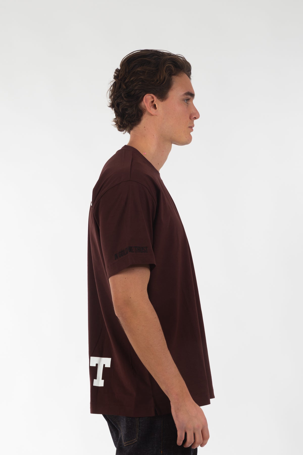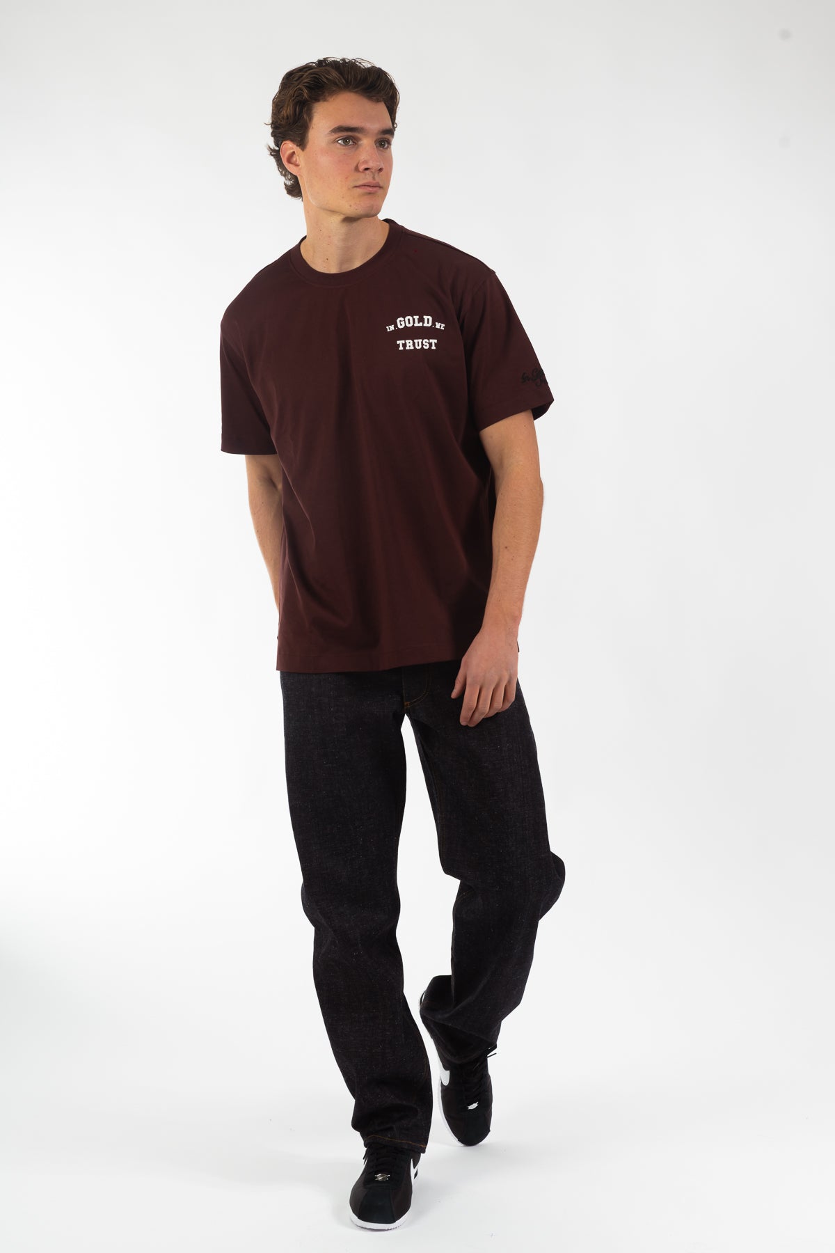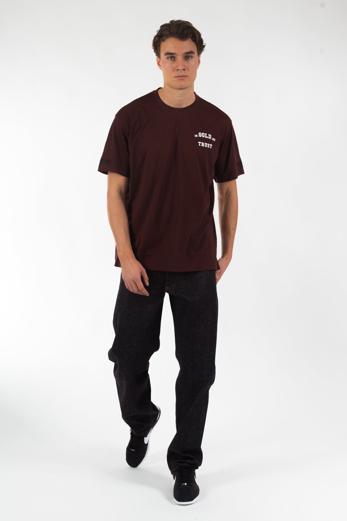 T-shirt uit de nieuwe collectie, gemaakt van 100% katoen in een comfortabele loose fit. Uitgevoerd in de kleur Bruin en voorzien van ons originele logo in hoogwaardige zeefdruk, met de herkenbare signature borduring op de mouwen. Tijdloos design, afgewerkt in de originele kwaliteit waar In Gold We Trust om bekendstaat.