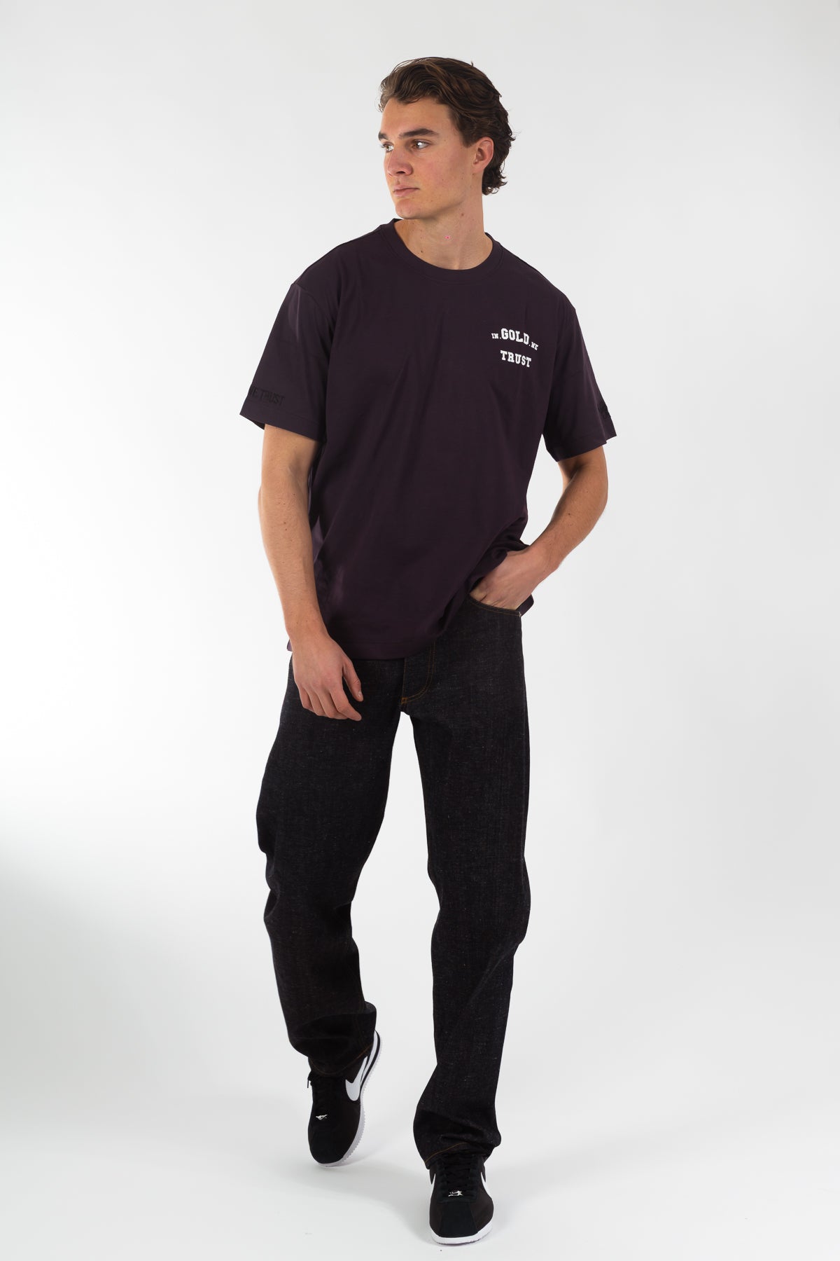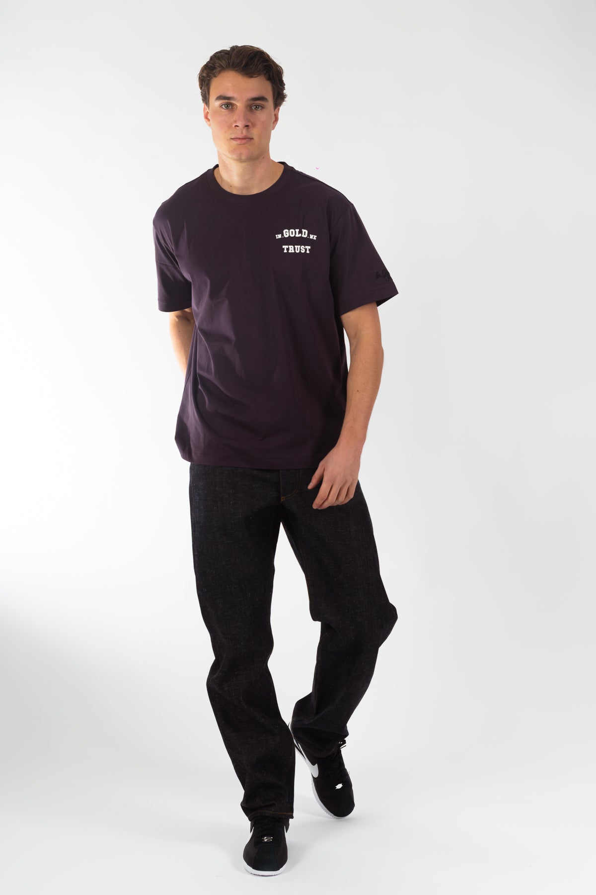 T-shirt uit de nieuwe collectie, gemaakt van 100% katoen in een comfortabele loose fit. Uitgevoerd in de kleur paars en voorzien van ons originele logo in hoogwaardige zeefdruk, met de herkenbare signature borduring op de mouwen. Tijdloos design, afgewerkt in de originele kwaliteit waar In Gold We Trust om bekendstaat.
